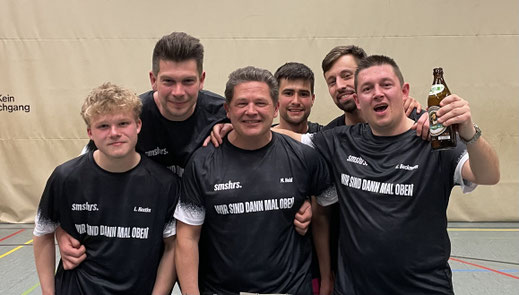 Vor der Saison 2024/25 war klar, dass die Mannschaft in der Liga ein gutes Wörtchen um den Aufstieg mitreden kann, wenn die Spieler auch regelmäßig eingesetzt werden können. Immerhin wurde die Mannschaft mit Andi Dach im vorderen und mit Benni Heinrichs im hinteren Paarkreuz als Stammspieler verstärkt. Die Vorrunde begann sehr vielversprechend. Trotz teilweise nicht bester Aufstellung wurden die ersten sechs Spiele gewonnen. Gegen Remshalden, den Mitkandidaten um den Aufstieg, folgte dann ein 8:8 und gegen den zweiten Mitkandidaten Waiblingen leider ein knappes 6:9 gegen uns. Hier mussten wir Janos und Kai krankheitsbedingt ersetzen, belegten aber dennoch Platz 2 nach der Vorrunde – die Berechtigung zum Aufstieg.